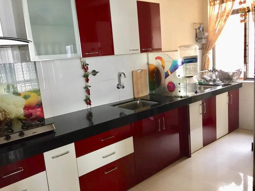 This is a 2 BHK flat available for sale in Amits Colori Phase 1, Undri. The fully furnished home includes kitchen cabinets, a chimney, a sofa, AC, and wooden cabinets in both bedro...
