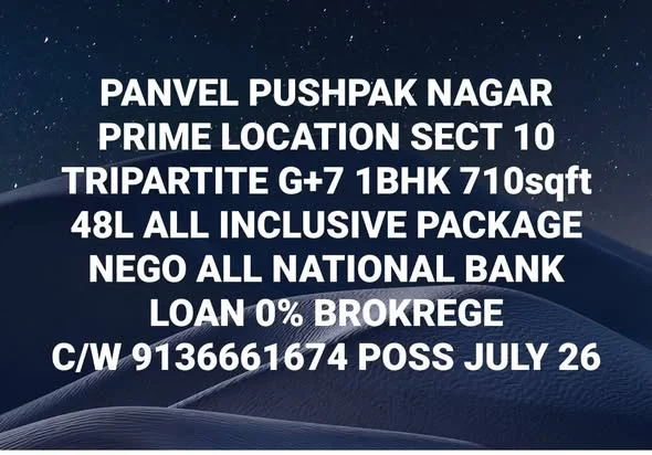 This real estate listing advertises a 1 BHK flat in Panvel, Pushpak Nagar, specifically in Sector 10. The property is part of a tripartite project and offers 710 sqft of space. The...