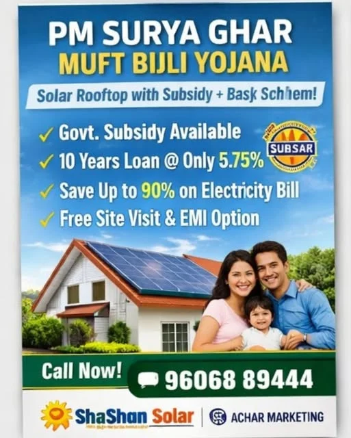 This ad promotes the PM Surya Ghar Muft Bijli Yojana, an initiative to install solar rooftops with government subsidies and easy bank loans. Key benefits include central government...