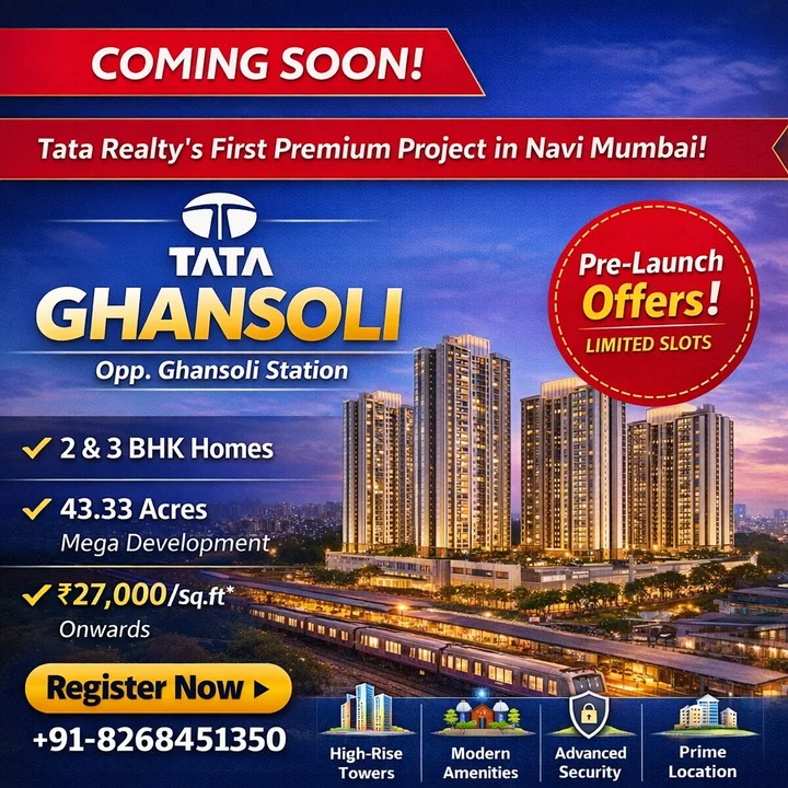This is an upcoming premium residential project by Tata Realty in Navi Mumbai, named Tata Ghansoli. It is located opposite Ghansoli Railway Station and spread across 43.33 acres. T...