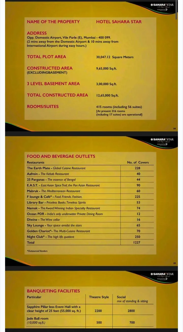 This is a direct deal for the Sahara Star, a 5-star hotel located near the Domestic Airport in Vile Parle (East), Mumbai. The property spans an area of 30,047.12 square meters, wit...