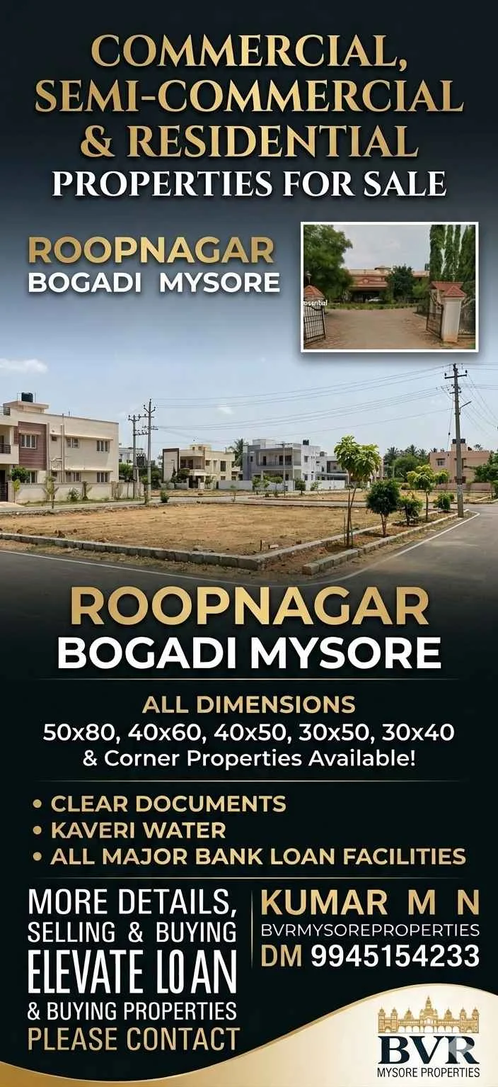Bvrmysoreproperties offers real estate investment opportunities in Mysore, providing assistance in finding safe and appropriate options. Kumar m n can be contacted for further info...