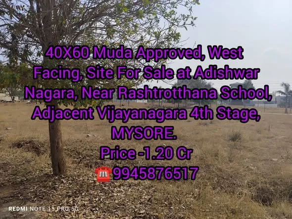 This is a listing for a 40X60 site that is Muda Approved and West Facing. It is located at Adishwar Nagara, Near Rashtrotthana School, Adjacent Vijayanagara 4th Stage, MYSORE. The ...