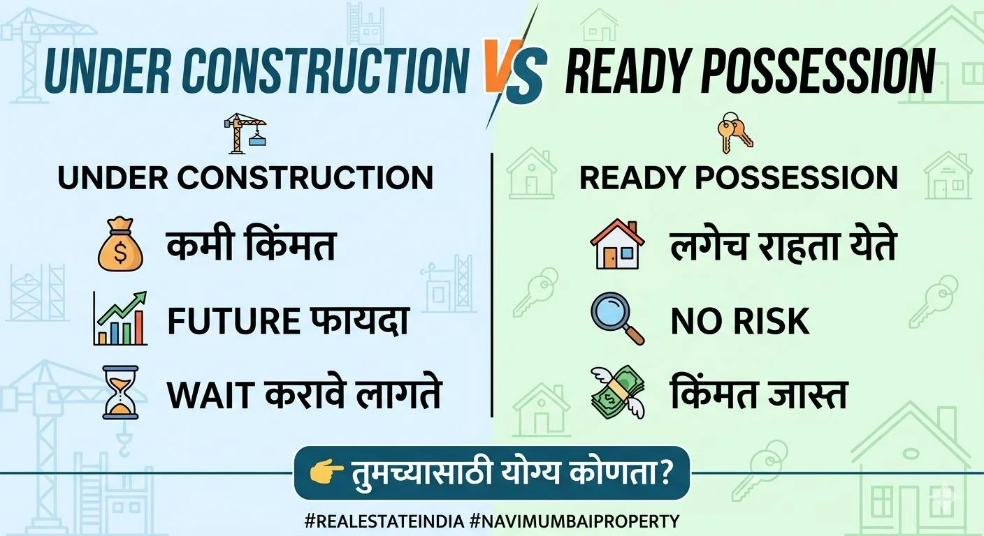 The ad discusses the dilemma of choosing between an under-construction property and a ready-possession property. Under-construction properties are cheaper, offer payment flexibilit...
