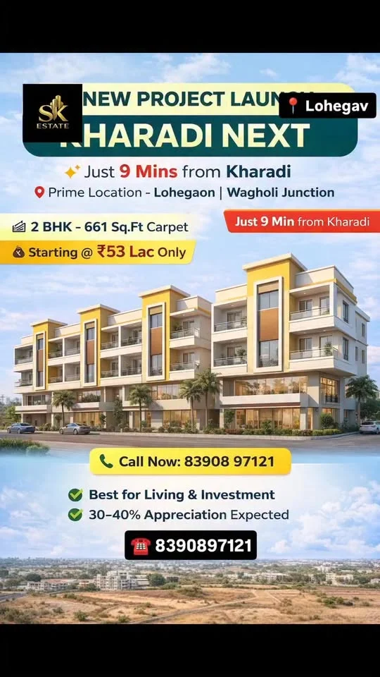 A new 2 BHK project is launching in Kharadi, located in a prime East Pune location. It's just 9 minutes from Kharadi, near Lohegaon-Kharadi-Wagholi Junction and a few minutes from ...