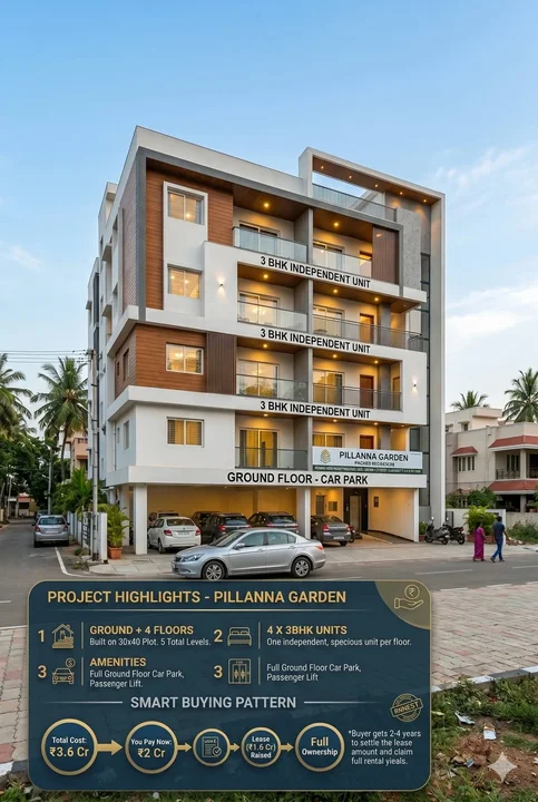 An independent house is available for sale in Pillana Garden. The property is built on a 30x40 plot and comprises Ground + 4 floors. It's offered under a strategic acquisition mode...