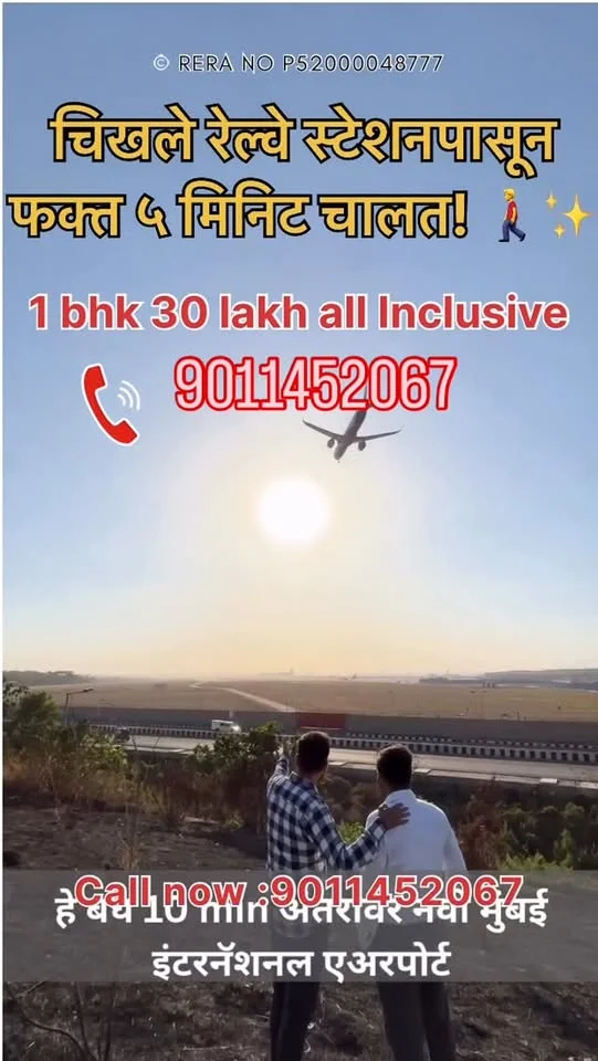 This real estate listing promotes 1BHK flats in Panvel, Navi Mumbai, located just a 5-minute walk from Chikhale station. The flats are available for 30 lakhs and offer full ameniti...
