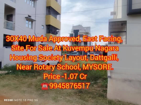This is a listing for a 30X40 site approved by MUDA (Mysore Urban Development Authority). The site is east-facing and located in Kuvempu Nagara Housing Society Layout, Dattgalli, n...