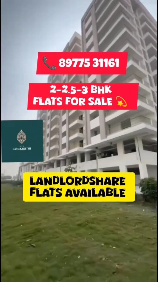 Exclusive offer for Avl's Samskruthi with OC received. Limited units are available at 7,499/- per sft. It features 2, 2.5, and 3 BHK landlord units for sale.