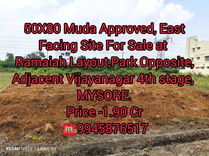 This is a listing for a 50X80 site for sale in MS Ramaiah Layout, opposite the park, adjacent to Vijayanagara 4th Stage in Mysore. The site is MUDA approved and east facing. The as...