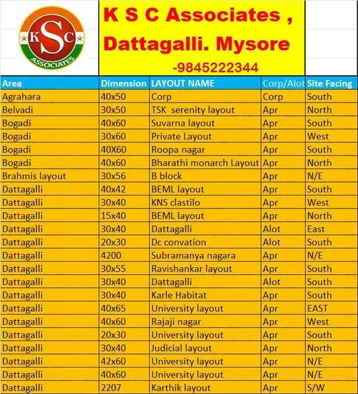 This is a site for sale at Myosre, located in Dattagalli, Mysore. The site is listed by K S C Associates.