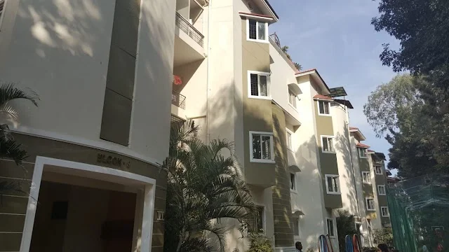This is a rental listing for a private bedroom in a 3 BHK apartment located in Vanshee Richfield Apartment, Marathahalli, Bengaluru. The apartment is on the ground floor with an at...