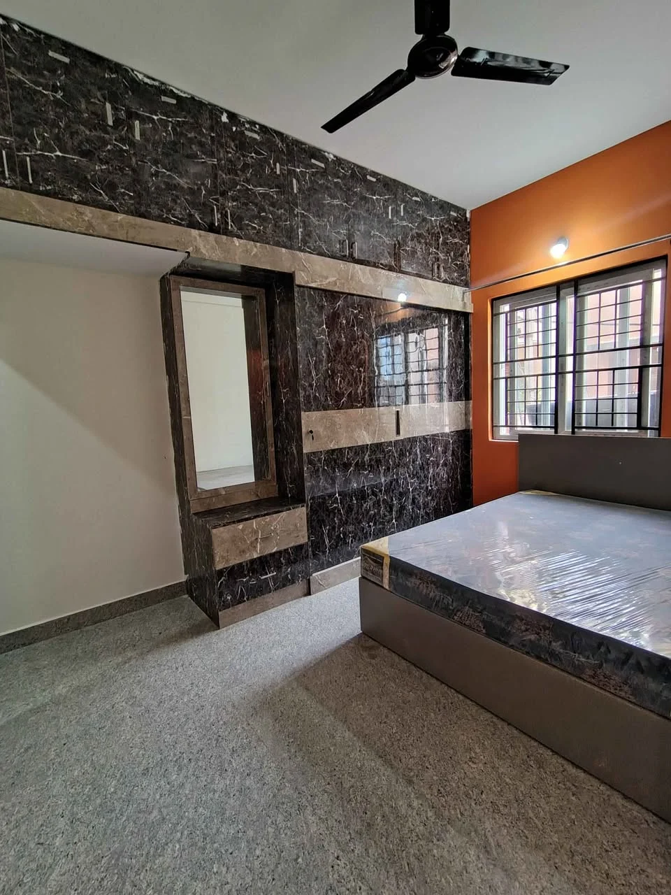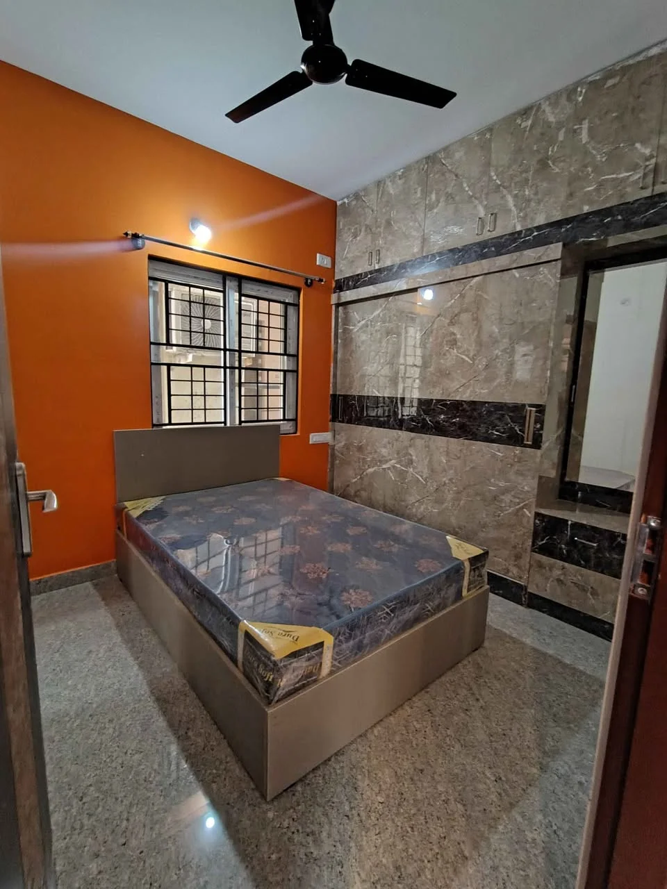 This is a rental availability ad for a fully furnished, brand new 1 BHK apartment located on Ejipura Main Road, Bengaluru. The apartment includes amenities such as a bed and mattre...