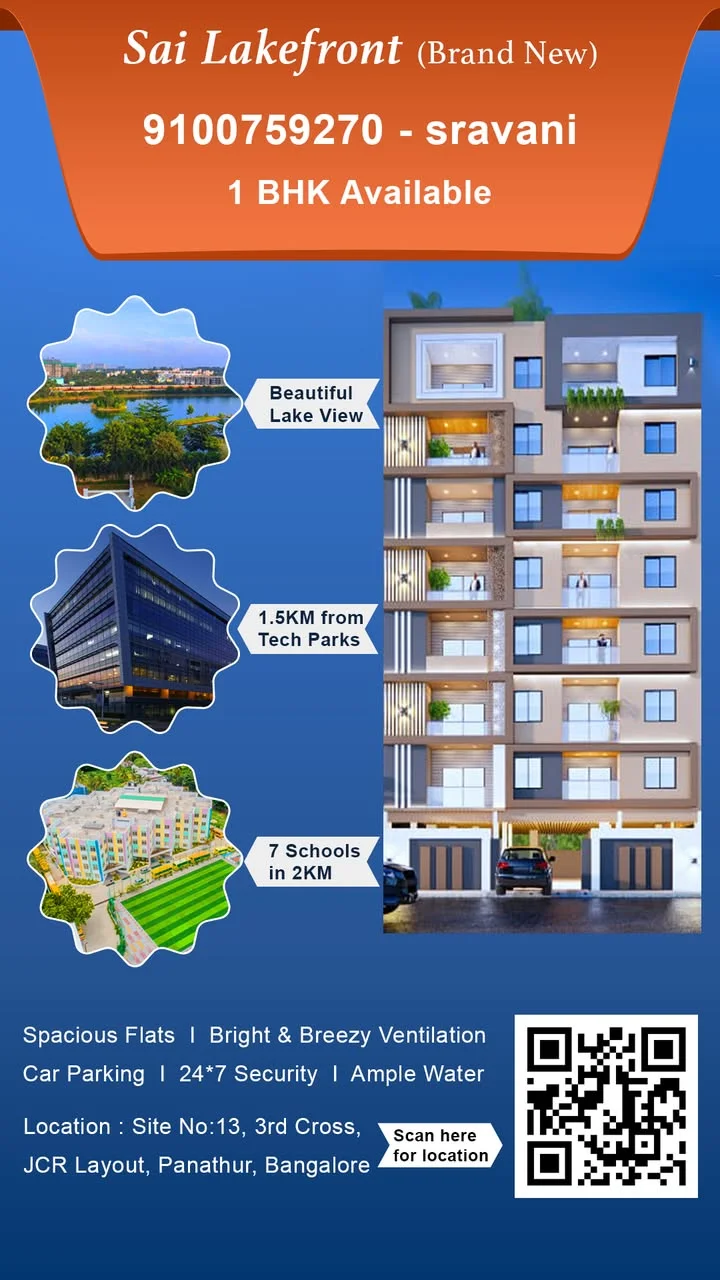 A fully furnished 1BHK flat with a lake view is available for rent in Lake Liva Apartment, located in JCR Layout, Panathur, Kadubeesanahalli, Marathalli, Bellandur. The flat featur...