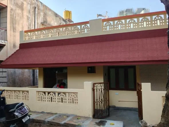 This is an independent 2BHK house available for rent in Kogilu, Maruthinagar near Hilton High School, Bengaluru. The house is built in 1200 sq ft and has corporation water supply.