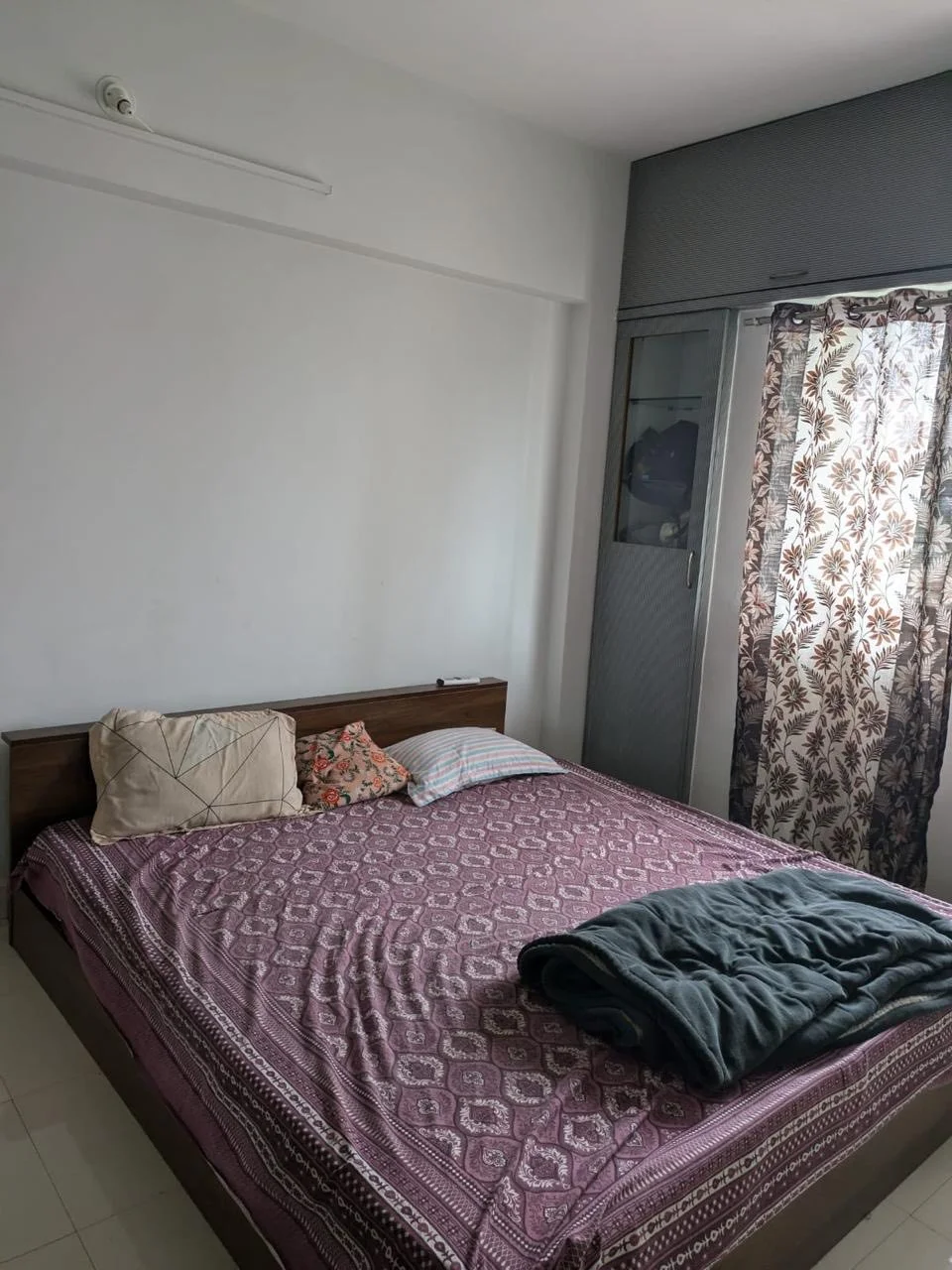 A single occupancy master bedroom is available for a working female in Viman Nagar starting May 1st. The room has an attached washroom and balcony.