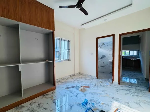 This is a listing for a brand new, semi-furnished 1BHK flat available for rent in Haralur, HSR Extension, Bengaluru. The monthly rent is ₹26,000. The property includes one bedroom ...