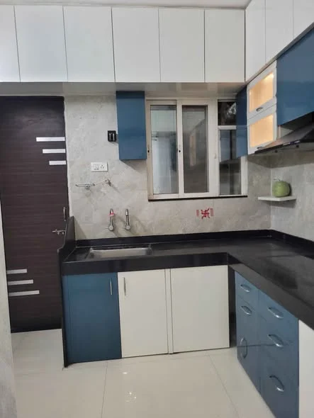 This is a 2BHK semi-furnished flat for rent in GK Rose Aster, Punawale, Pimpri-Chinchwad. The flat is newly painted and features a modular kitchen with a trolley and chimney, as we...