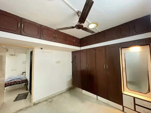 This is a spacious 2 BHK flat for rent near Dahanukar Colony, Shriram Mandir, Kothrud. It is located in a gated society and features a single bed, wardrobe, and a kitchen with a tr...