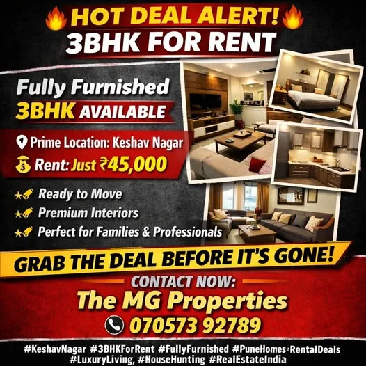 A fully furnished 3BHK apartment is available for rent in the prime location of Keshav Nagar. The monthly rent is ₹45,000. It is ready to move in and features premium interiors, ma...