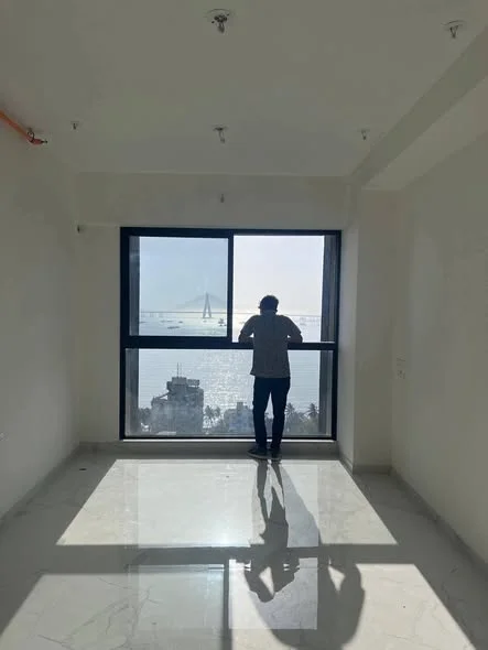 This is a 2 BHK builder finish flat with sea view available for rent in Mahim. The building has all amenities and is available immediately.