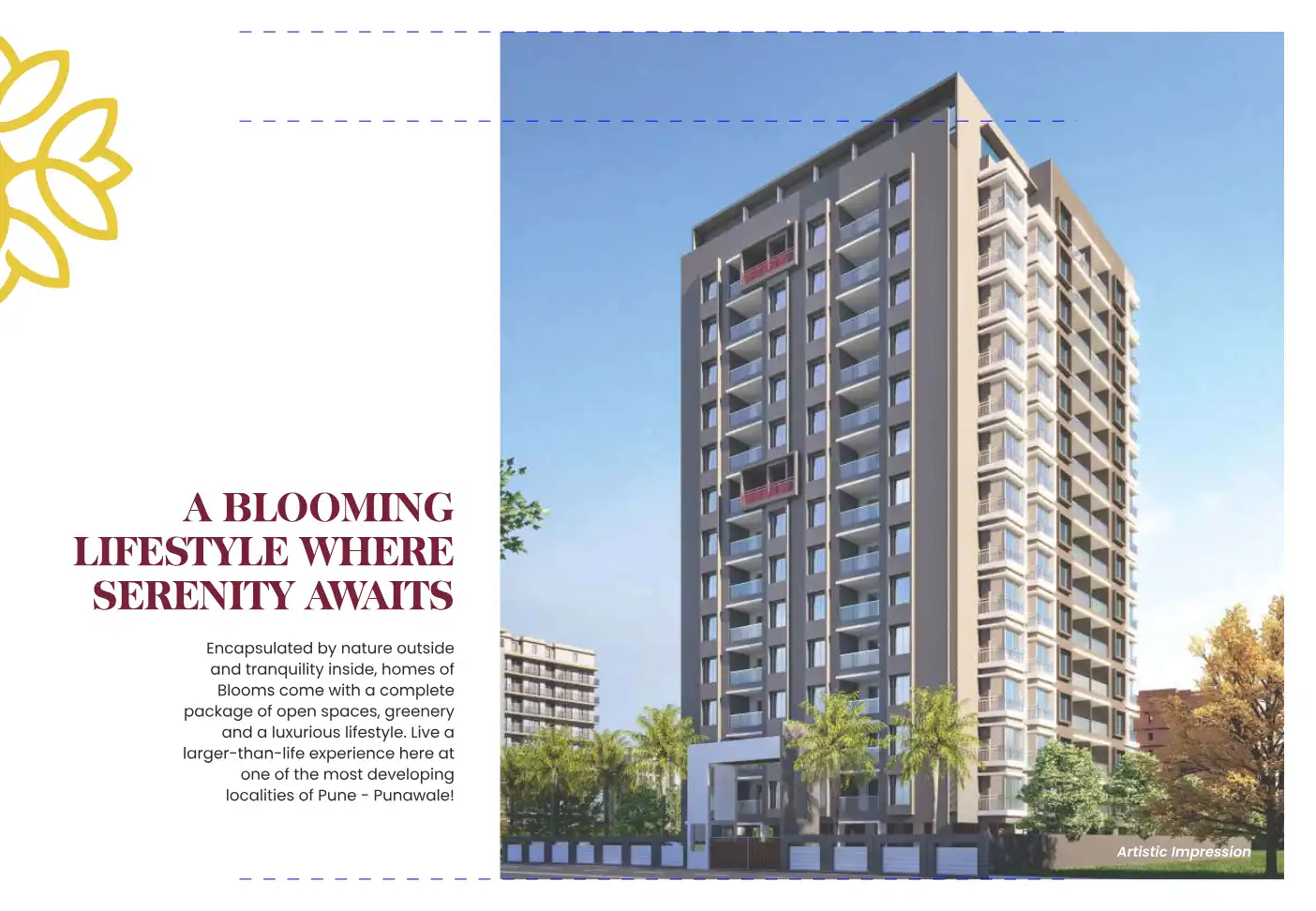 Encapsulated by nature outside and tranquility inside, homes of Blooms come with a complete package of open spaces, greenery and a luxurious lifestyle. Live a larger-than-life experience here at one of the most developing localities of Pune - Punawal...
