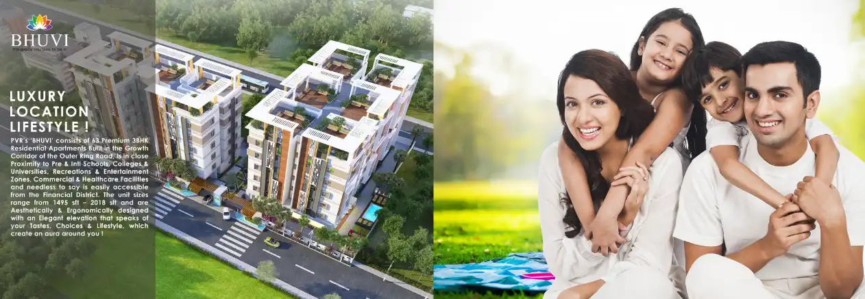 BHUVI consists of 63 Premium 3BHK Residential Apartments Built in the Growth Corridor of the Outer Ring Road, Is in close Proximity to Pre & Intl Schools, Colleges & Universities, Recreations & Entertainment Zones, Commercial & Healthcare Facilities ...