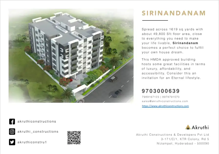 With the abundance of amenities, its close proximity to the world's best institutions, and its unbelievably affordable pricing structure, our Akruthi's Sirinandanam stands out as one of the iconic residential apartments in the locality.