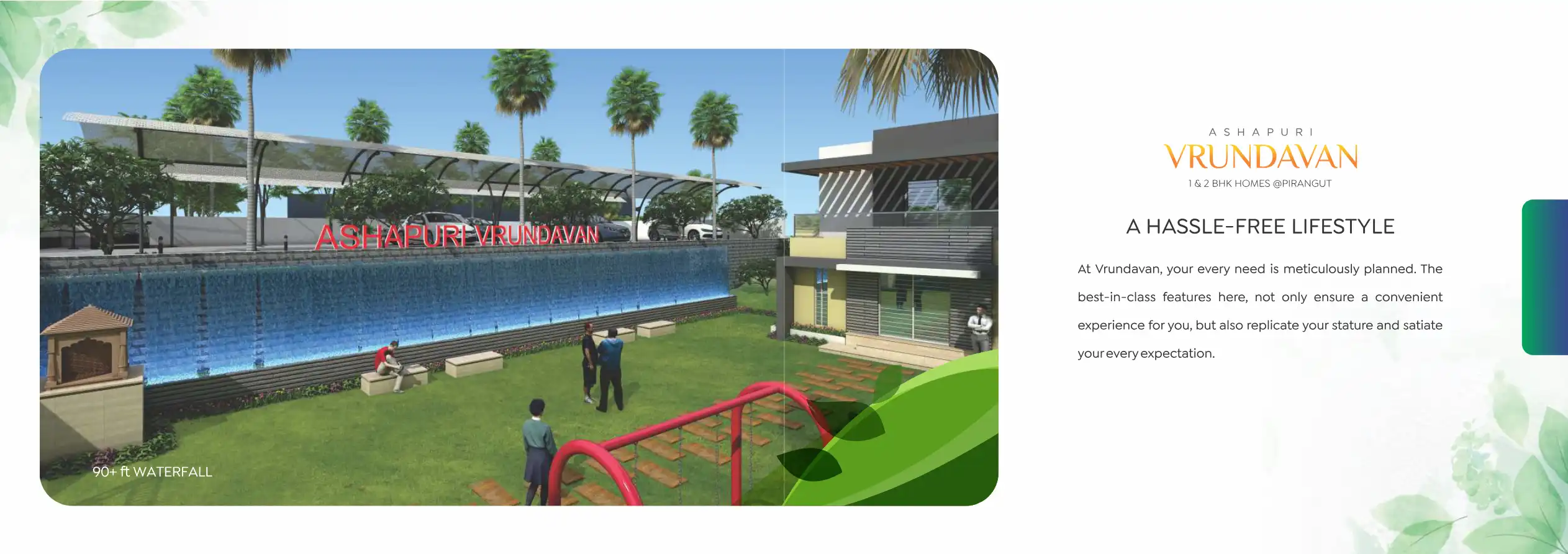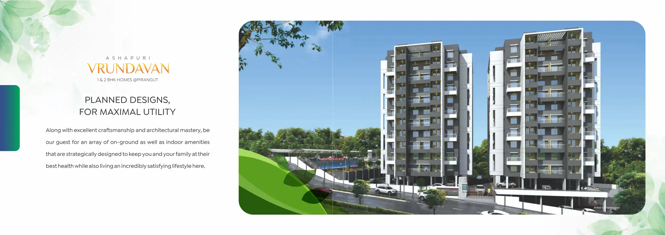 Welcome happiness with Vrundavan 1,2 BHK Homes @ Pirangut. A project designed with maximum space and brilliant specifications. Each apartments comes with details that makes your life welcome happiness everyday.