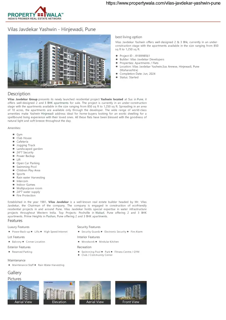 Vilas Javdekar Group presents its newly launched residential project Yashwin located at Sus in Pune, it offers well-designed 2 and 3 BHK apartments for sale. The project is currently in an under-construction stage with the apartments available in the...