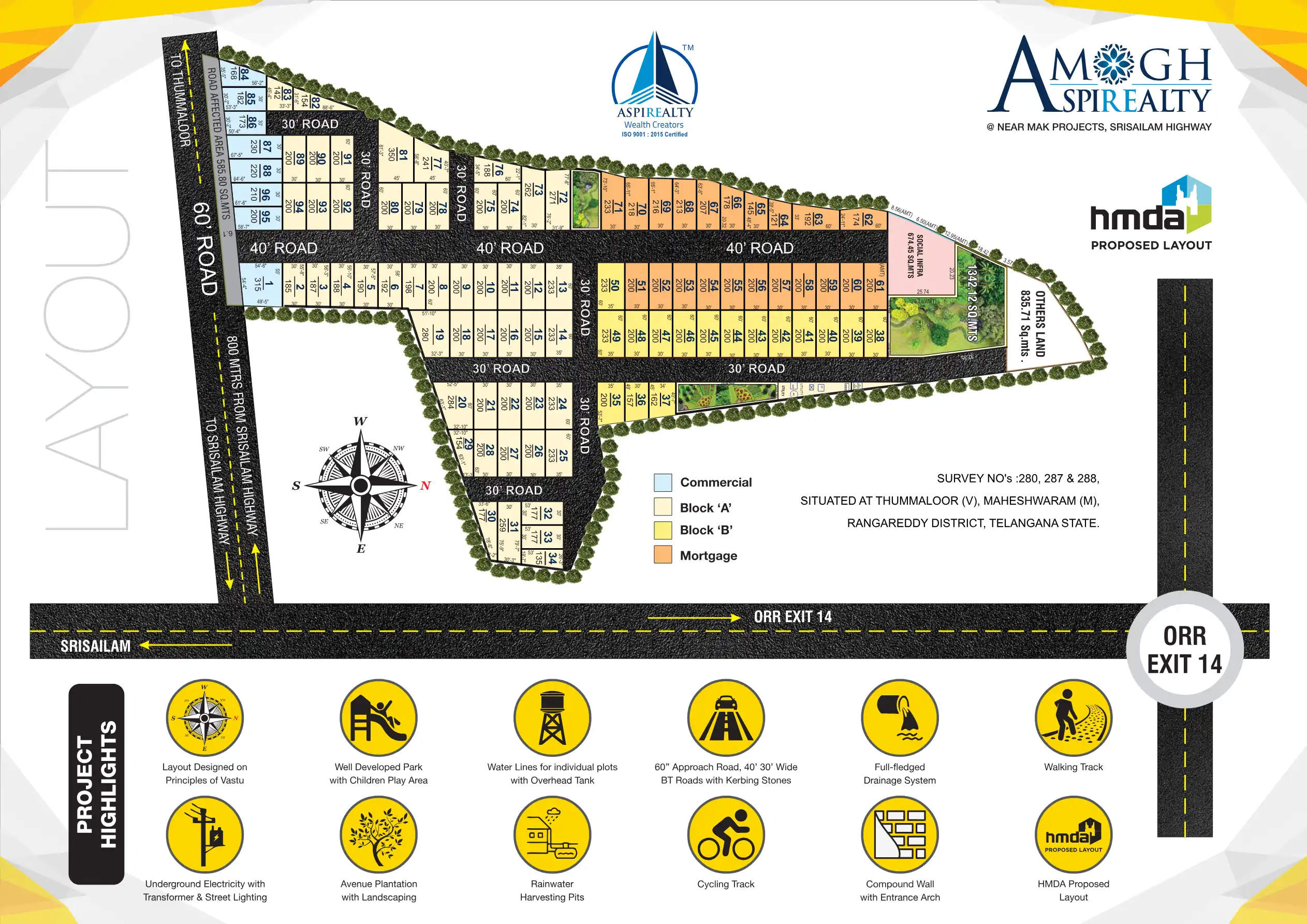 Welcome to Amogh, a stunning property spanning across 7 acres located very near to the well-connected Srisailam Highway & Outer Ring Road. Our venture is surrounded by GOVT. projects like E-City, Pharma City, & Hardware park. The neighbourhood's pres...
