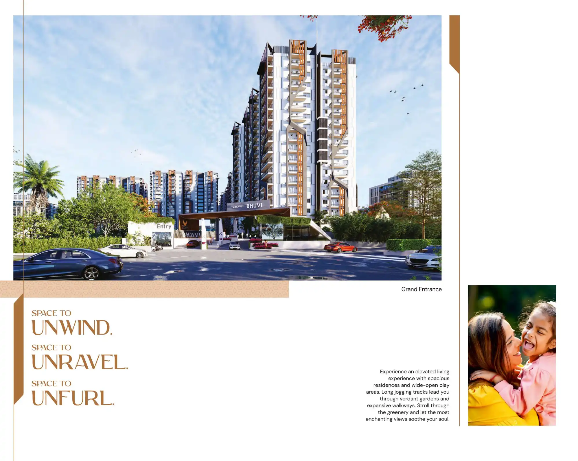 Vasavi Bhuvi represents an opportunity to live an enviable lifestyle -inclusively exclusive amenities, hospitality services and privileges including an extraordinary park, abundant space and carefully landscaped greenery.