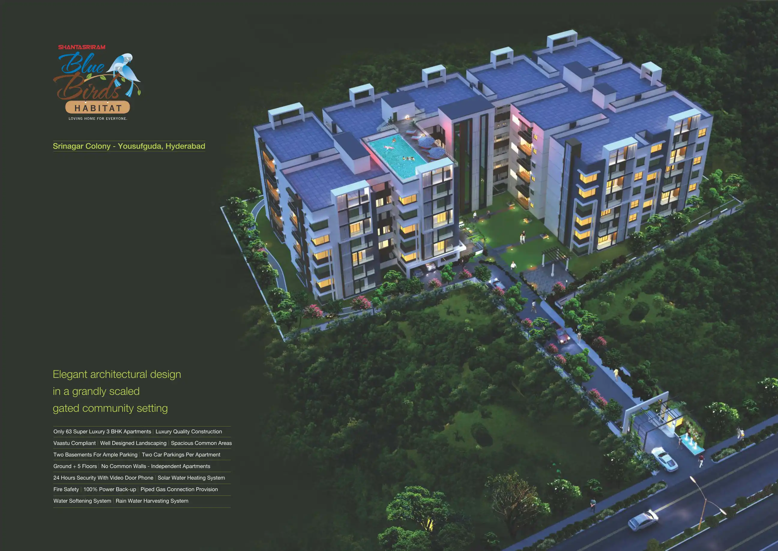 A premium residential enclave that's crafted for those few who value exclusivity. Set in the prime locale of Yousufguda, close to Krishnakanth Park, KBR Park and Sarathi Studios, the harmonious haven of 63 ultra premium apartments is replete with ene...