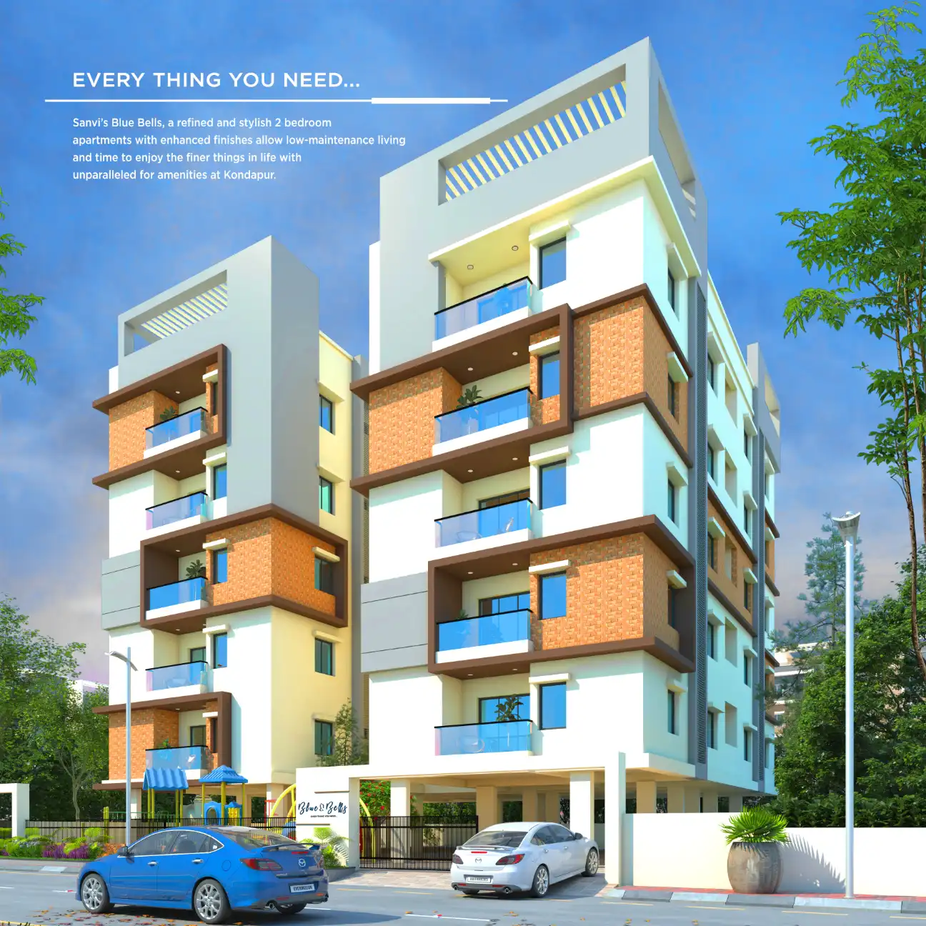 Sanvi's Blue Bells, a refined and stylish 2 bedroom apartments with enhanced finishes allow low-maintenance living and time to enjoy the finer things in life with unparalleled for amenities at Kondapur.