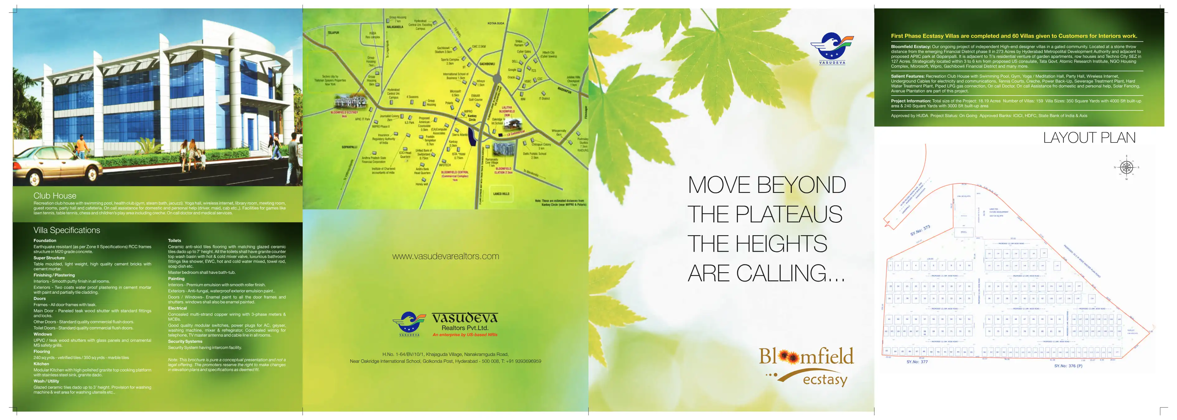 Bloomfield Ecstasy: Our ongoing project of independent High-end designer villas in a gated community. Located at a stone throw distance from the emerging Financial District phase II in 273 Acres by Hyderabad Metropolital Development Authority and adj...