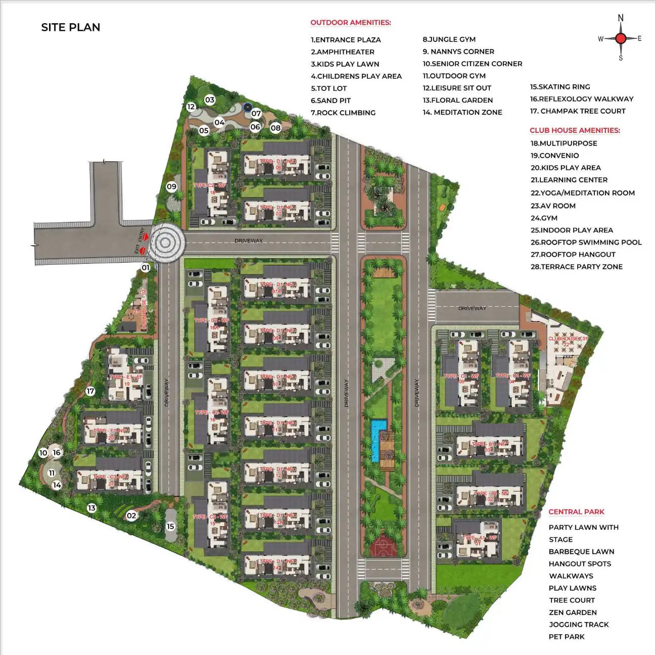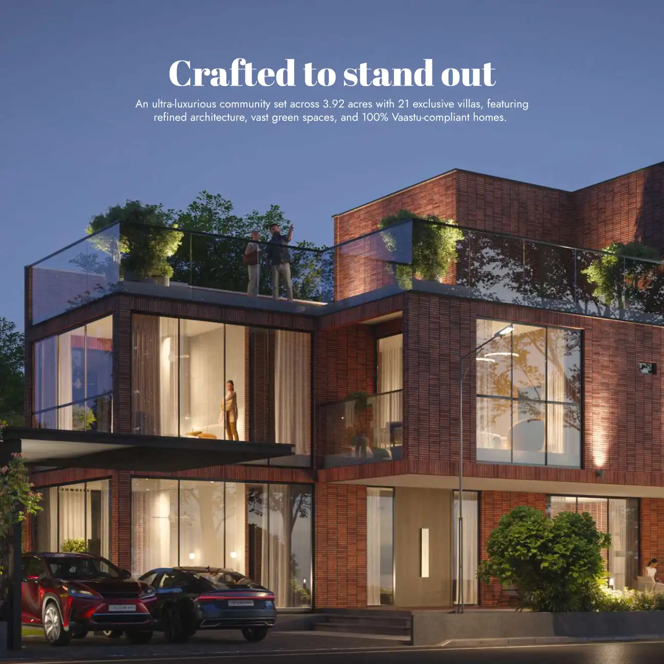 An ultra-luxurious community set across 3.92 acres with 21 exclusive villas, featuring refined architecture, vast green spaces, and 100% Vaastu-compliant homes.