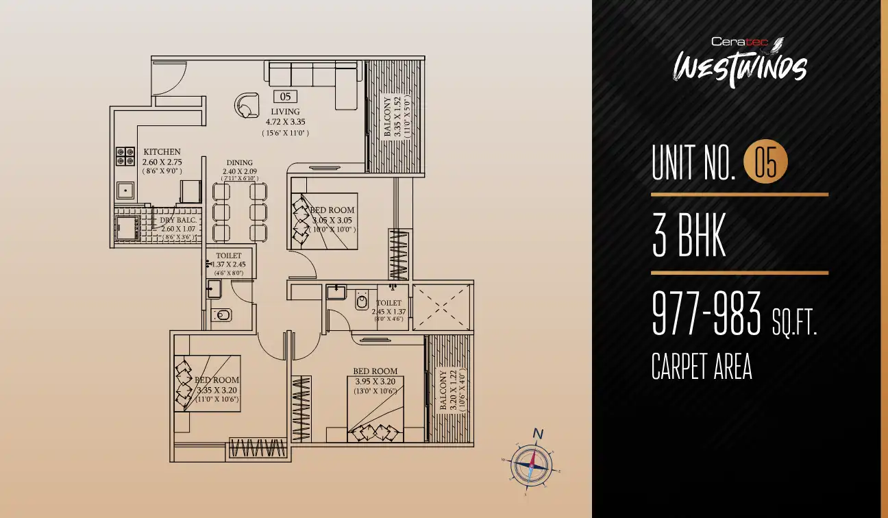 - 3 BHK Flats for Sale near Ceratec West Winds