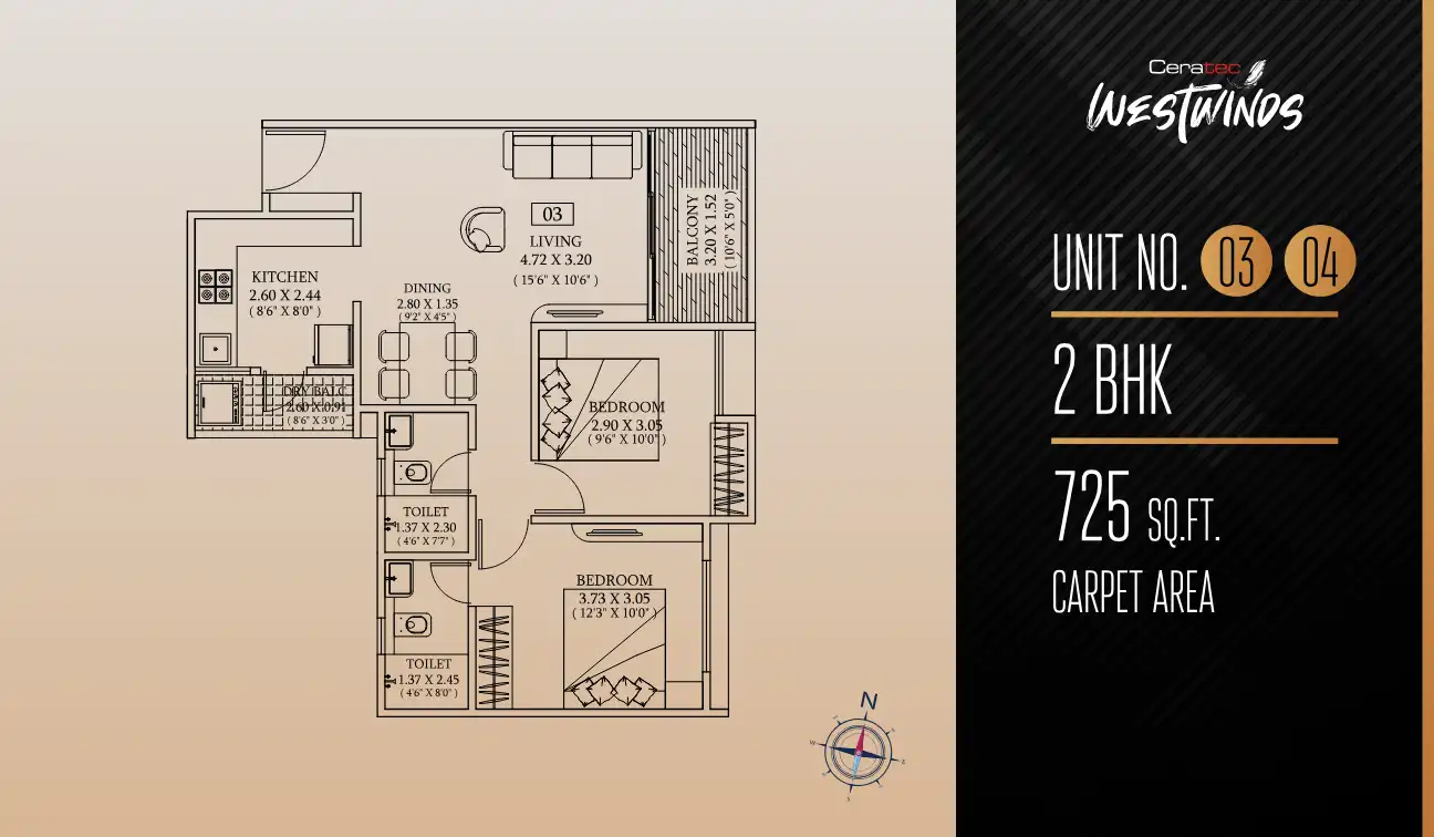 - 2 BHK Flats for Sale near Ceratec West Winds