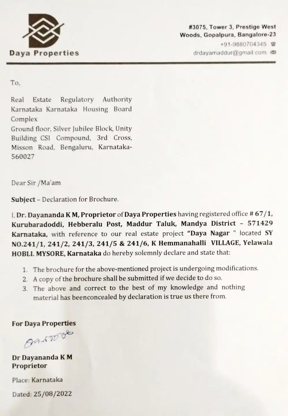 Daya Nagar is a real estate project.