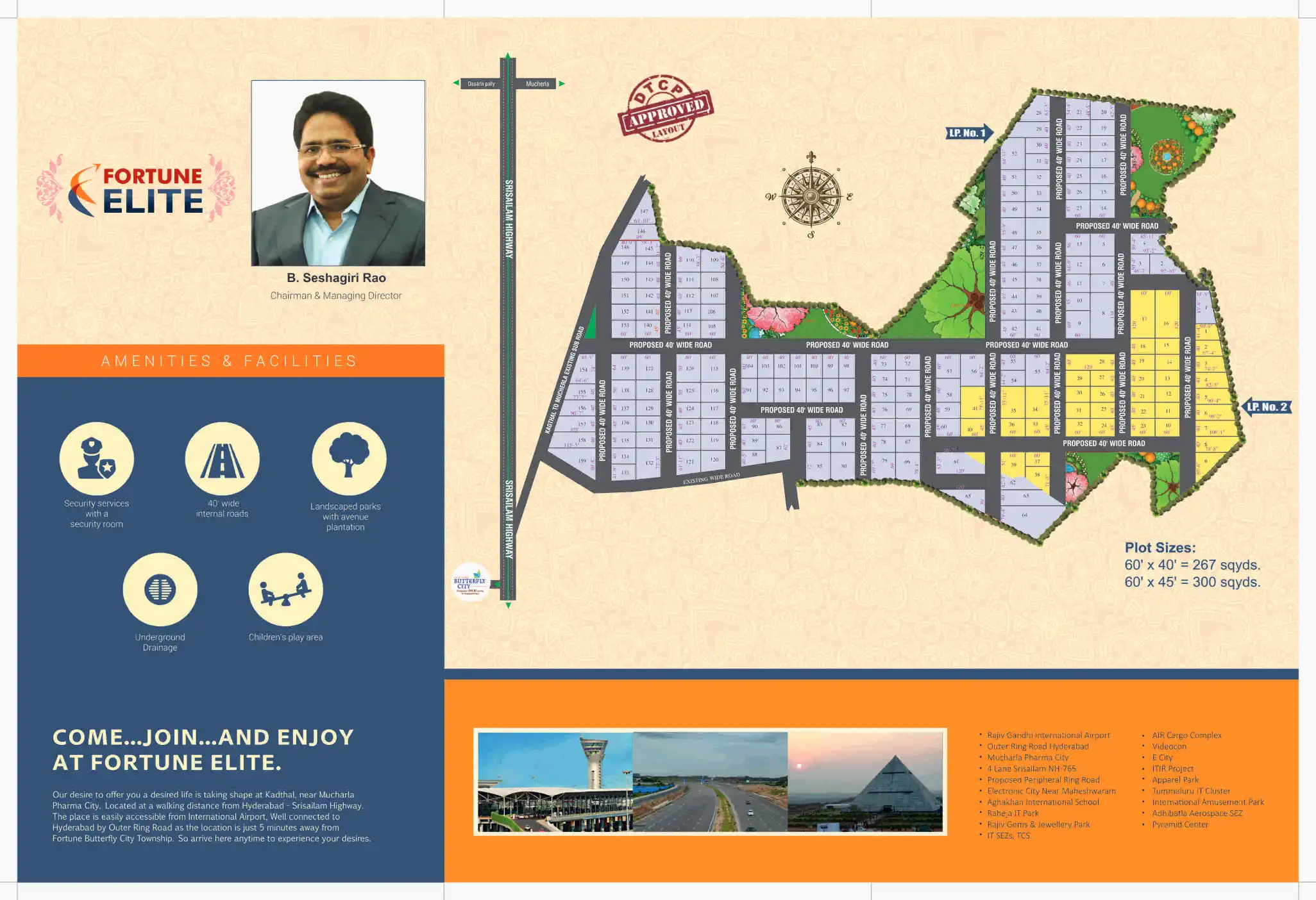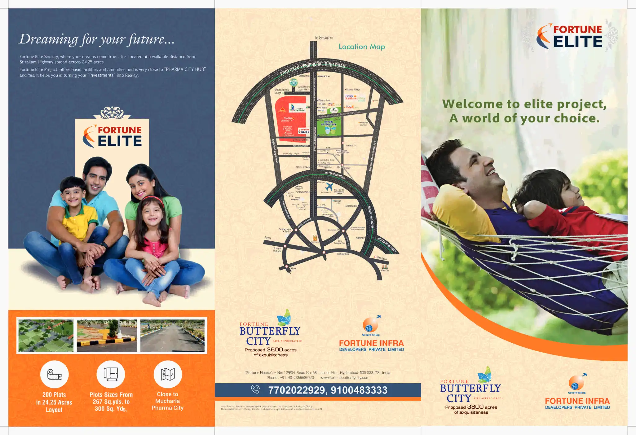 Fortune Elite Society, where your dreams come true... It is located at a walkable distance from Srisailam Highway spread across 24.25 acres. Fortune Elite Project, offers basic facilities and amenities and is very close to "PHARMA CITY HUB" and Yes, ...
