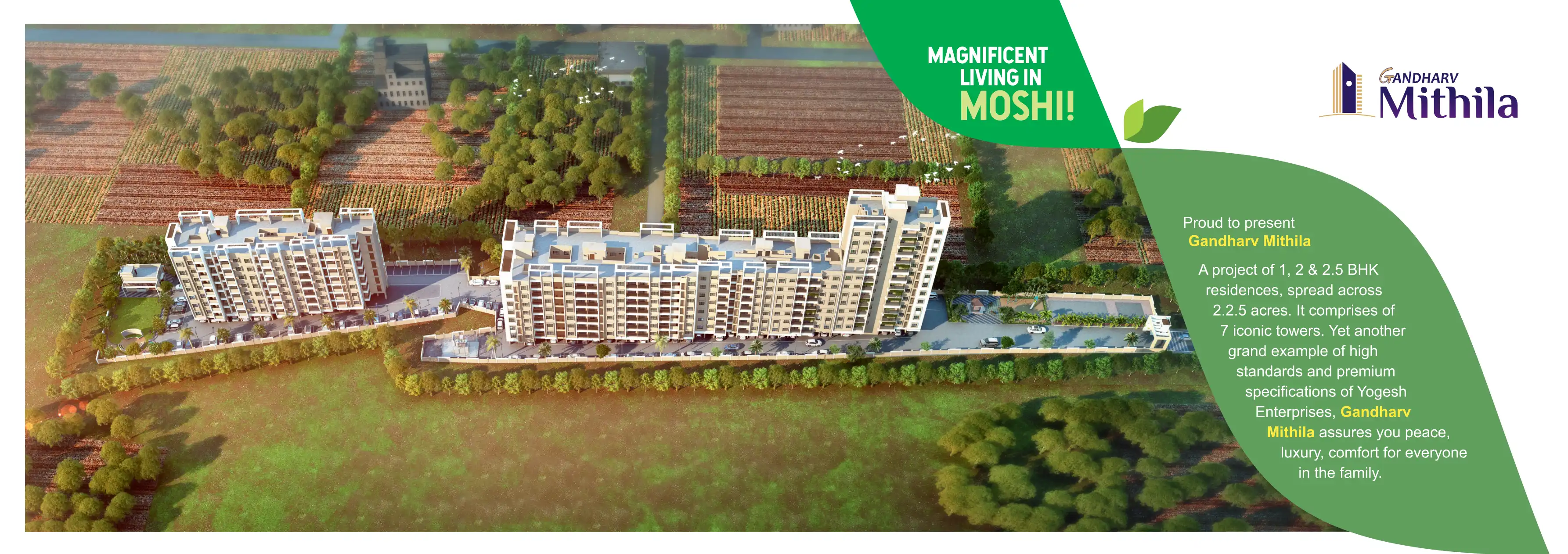 Gandharv Mithila is a project of 1, 2 & 2.5 BHK residences, spread across 2.2.5 acres. It comprises of 7 iconic towers.