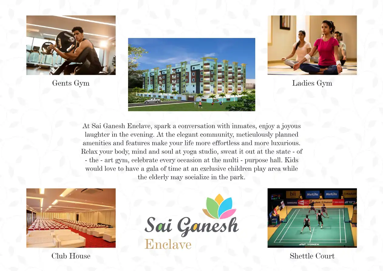 At Sai Ganesh Enclave, spark a conversation with inmates, enjoy a joyous laughter in the evening. At the elegant community, meticulously planned amenities and features make your life more effortless and more luxurious. Relax your body, mind and soul ...