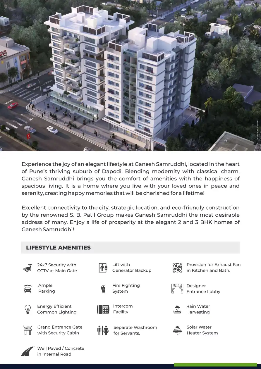 Experience the joy of an elegant lifestyle at Ganesh Samruddhi, located in the heart of Pune's thriving suburb of Dapodi. Blending modernity with classical charm, Ganesh Samruddhi brings you the comfort of amenities with the happiness of spacious liv...