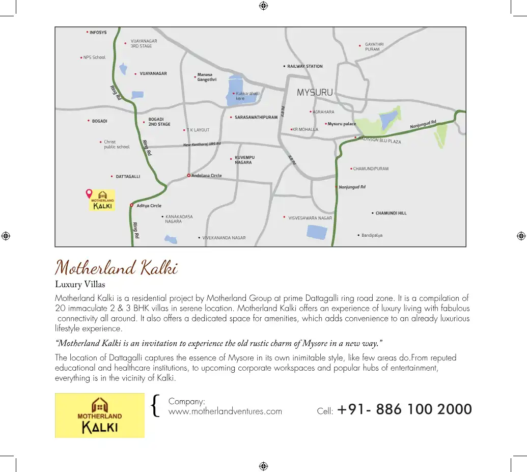 Motherland Kalki is a residential project by Motherland Group at prime Dattagalli ring road zone. It is a compilation of 20 immaculate 2 & 3 BHK villas in serene location. Motherland Kalki offers an experience of luxury living with fabulous connectiv...