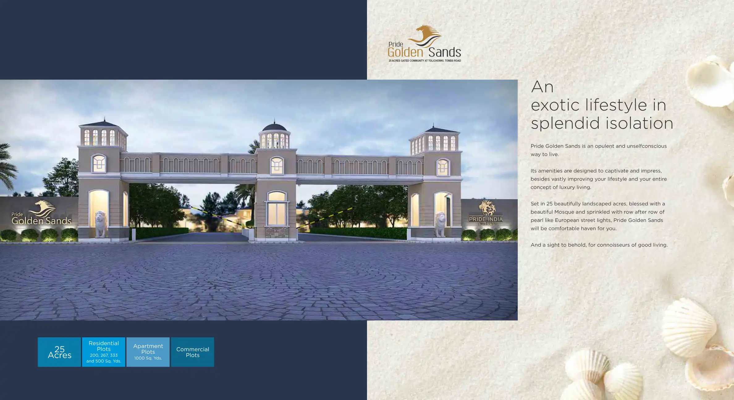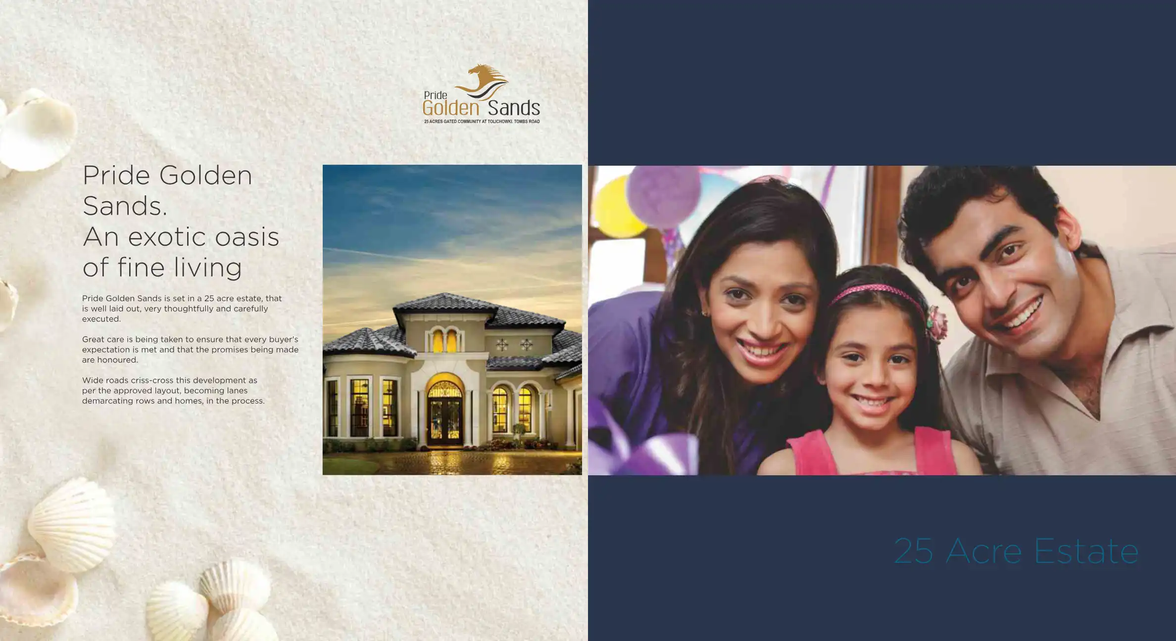 Pride Golden Sands is set in a 25 acre estate, that is well laid out, very thoughtfully and carefully executed. Wide roads criss-cross this development as per the approved layout, becoming lanes demarcating rows and homes, in the process.