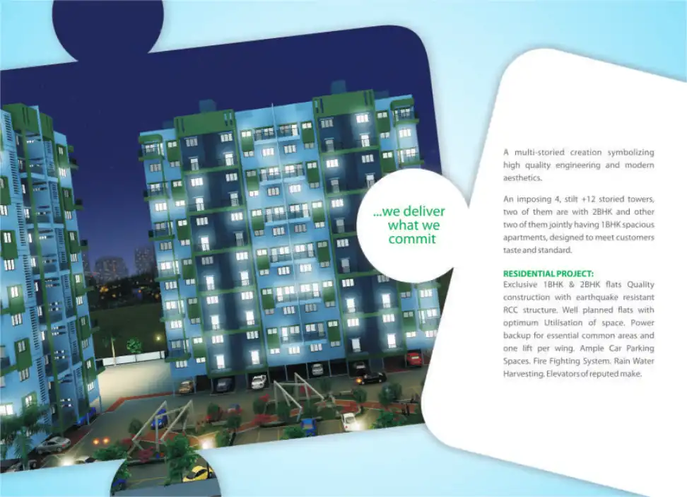Exclusive 1BHK & 2BHK flats Quality construction with earthquake resistant RCC structure. Well planned flats with optimum Utilisation of space. Power backup for essential common areas and one lift per wing. Ample Car Parking Spaces. Fire Fighting Sys...