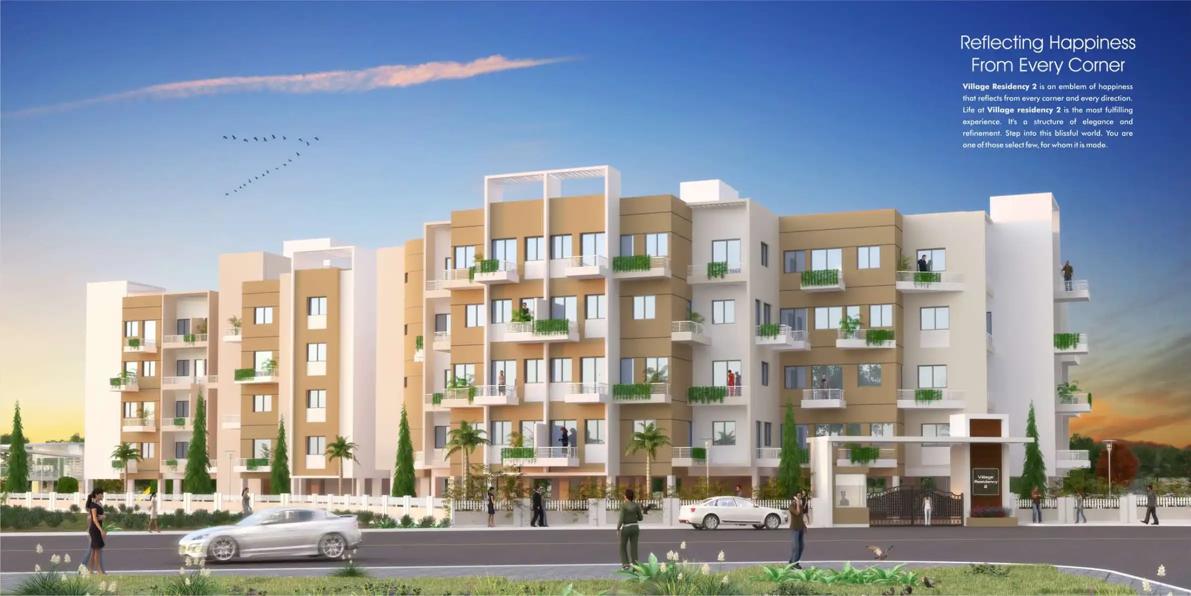 Village Residency 2 is designed as 2 building offering 4 floors of spacious 1& 2 BHK apartments. Multipurpose hall with well equipped gym and swimming pool. On ground level, more amenities await your children's play area, temple, amphitheater and wal...