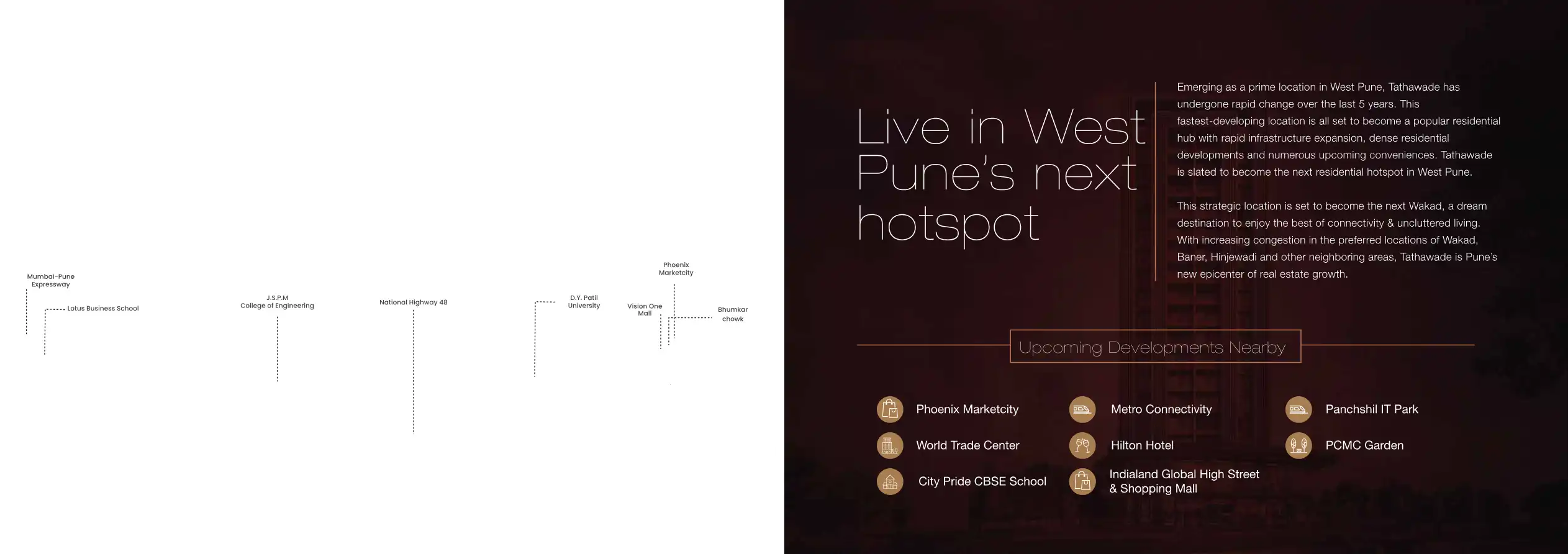 Residents in Tathawade enjoy a balanced lifestyle with a mix of urban conveniences and a relatively serene environment. The area is equipped with essential amenities like supermarkets, healthcare facilities, and dining options. Its proximity to larger commercial centers in Pimpri-Chinchwad provides access to extensive shopping and entertainment choices, ensuring a comfortable living experience.