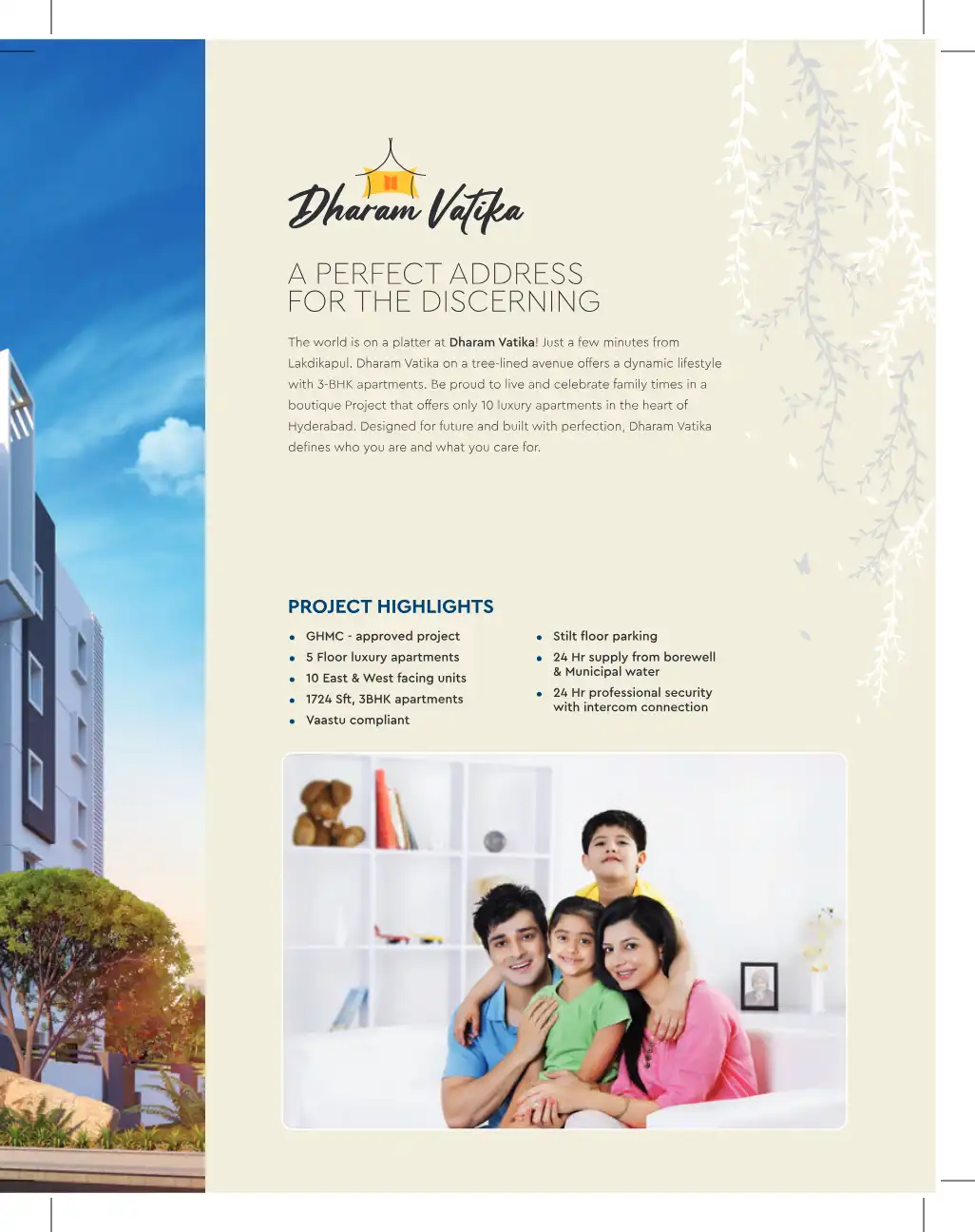 Dharam Vatika is on a tree-lined avenue offers a dynamic lifestyle with 3-BHK apartments. Be proud to live and celebrate family times in a boutique Project that offers only 10 luxury apartments in the heart of Hyderabad. Designed for future and built...