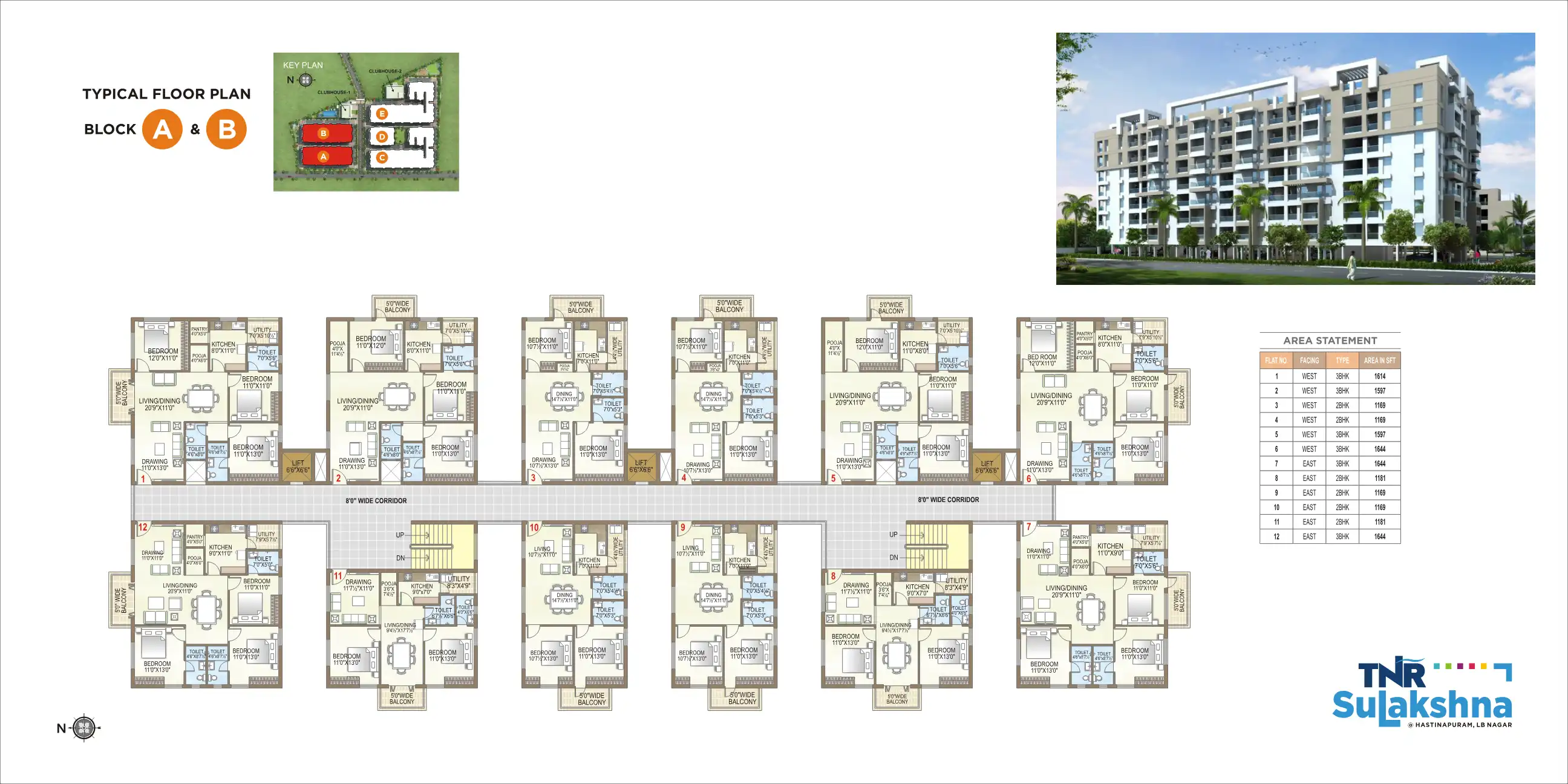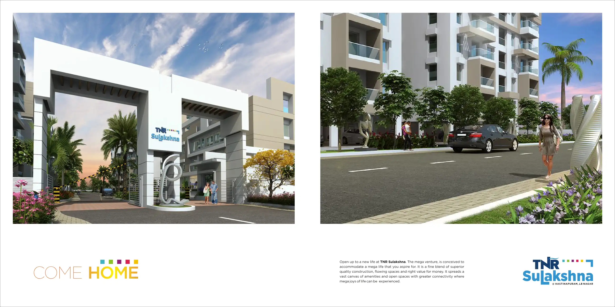 TNR Sulakshna is a mega residential project, that would be the benchmark in defining new age lifestyle. It offers two and three BHK apartments with areas from 1094 Sft to 1754 Sft.